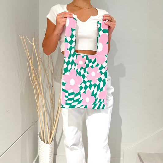 Nao Checkered Flower Tote Bag